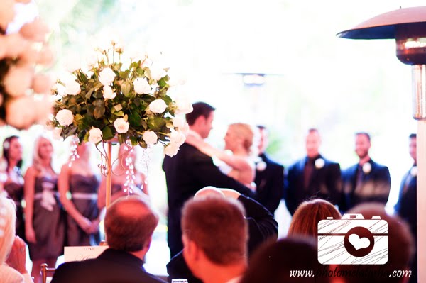 A little while later we headed to the wedding/reception location, decked out with one gigantic tent nestled in the middle of what looked to be a rainforest in the middle of South California. It was gorgeous!! Birds of paradise, palm trees, fountains and bridges and at one point I even saw a lizard run past. I jumped of course! 🙂